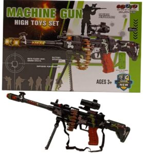 • Super Cool Design: ThisArmy Style Machine Gun  ultra-cool military machine toy gun with scope features an impressive barrage of sound, sight, and awesome vibration when activated. Our toy machine gun even comes with a scope that you can look through and a stand to keep it stable and secure on the ground. It’s built ready for some serious action!