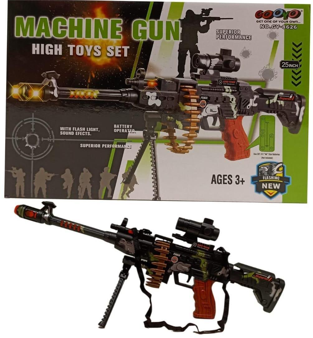 Toy for Kids with Realistic Bullets on Belt Movement, Music, Lights and Laser LightArmy Style Machine Gun (25 Inch) – Color As Per Stock
